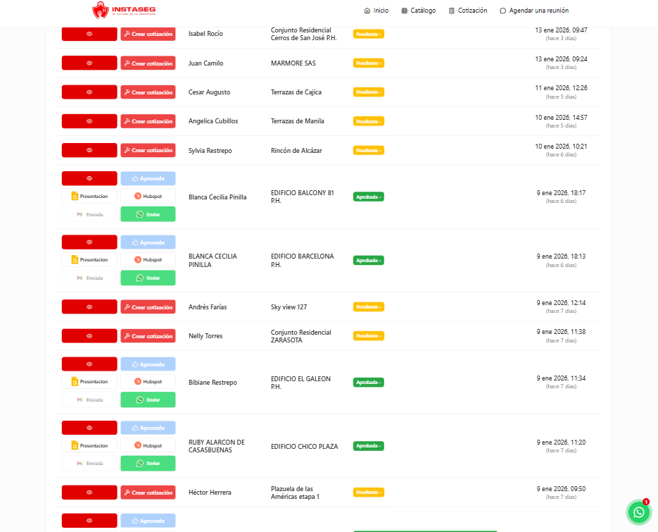 - Panel de administración → Vista centralizada de todas las cotizaciones, estados y seguimiento.